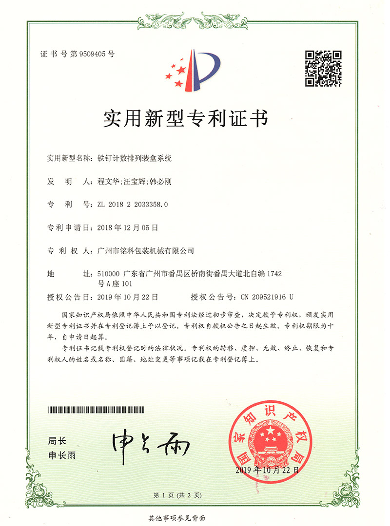 铁钉计数排列装盒系统